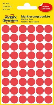 Etikett, 12 mm, kör, AVERY ZWECKFORM, piros, 270 etikett/csomag