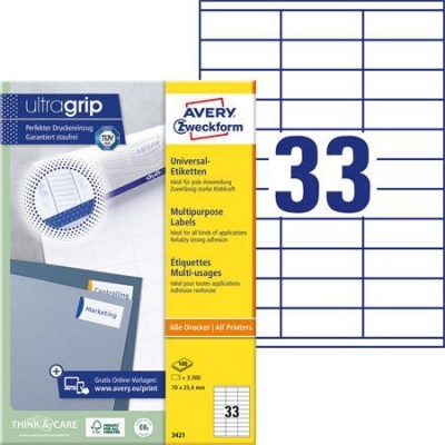 KezdőlapIrodaszerekIrodai papíráruEtikettekEtikett, univerzális, 70x25,4 mm, AVERY ZWECKFORM, 3300 etikett/csomag