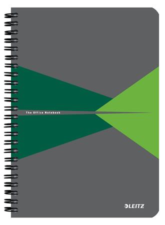 Spirálfüzet, A5, vonalas, 90 lap, PP borító, LEITZ "Office", szürke-zöld