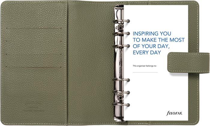 Kalendárium, gyűrűs, betétlapokkal, personal méret, FILOFAX "Camden", oliva